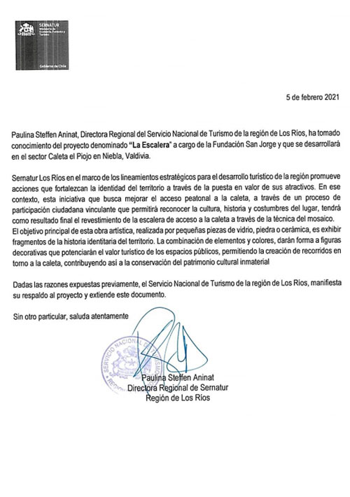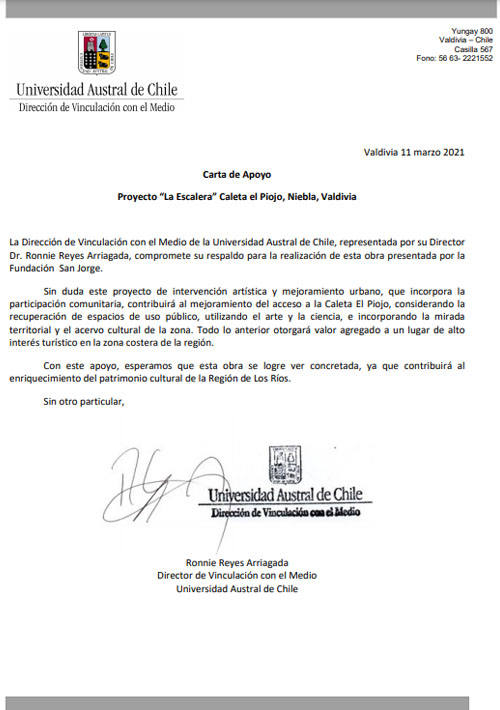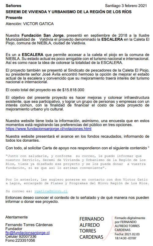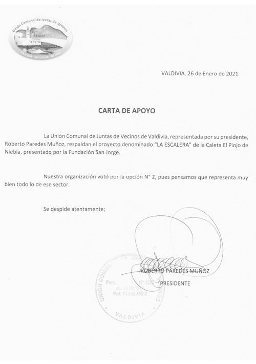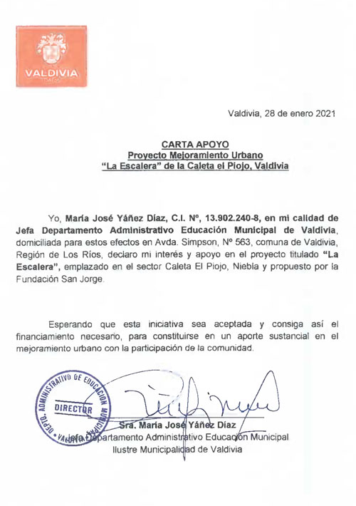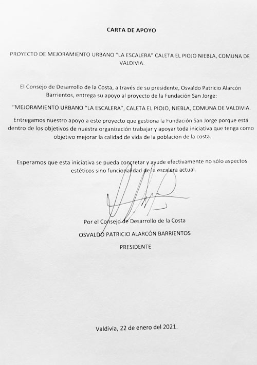 Carta de Apoyo: proyecto Mejoramiento Urbano "La Escalera"